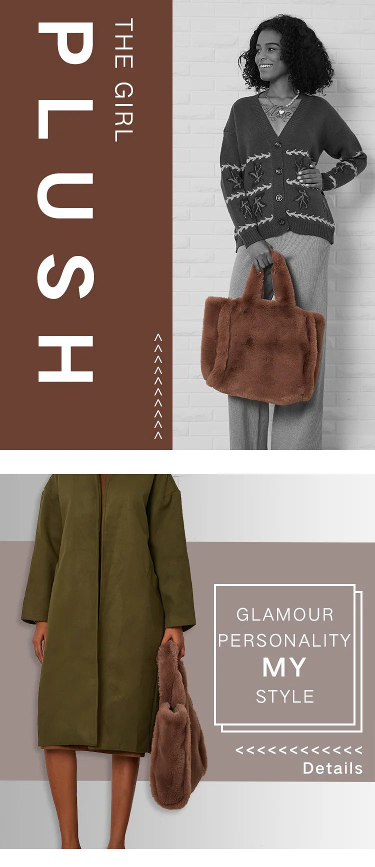 Découvrez un sac unique conçu pour répondre à vos besoins quotidiens. Fabriqué en fausse fourrure douce, ce modèle en format cabas offre une combinaison idéale entre praticité et esthétique. Son intérieur spacieux sans poche permet de transporter facilement vos essentiels. L’extérieur en matériau solide et ses grandes dimensions (35 cm x 30 cm x 13 cm) en font une solution adaptée à toutes les occasions.